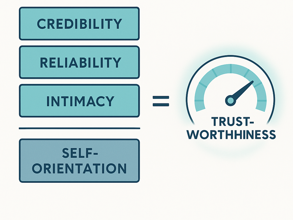 Trustworthiness = (Credibility + Reliability + Intimacy) ÷ Self‑Orientation